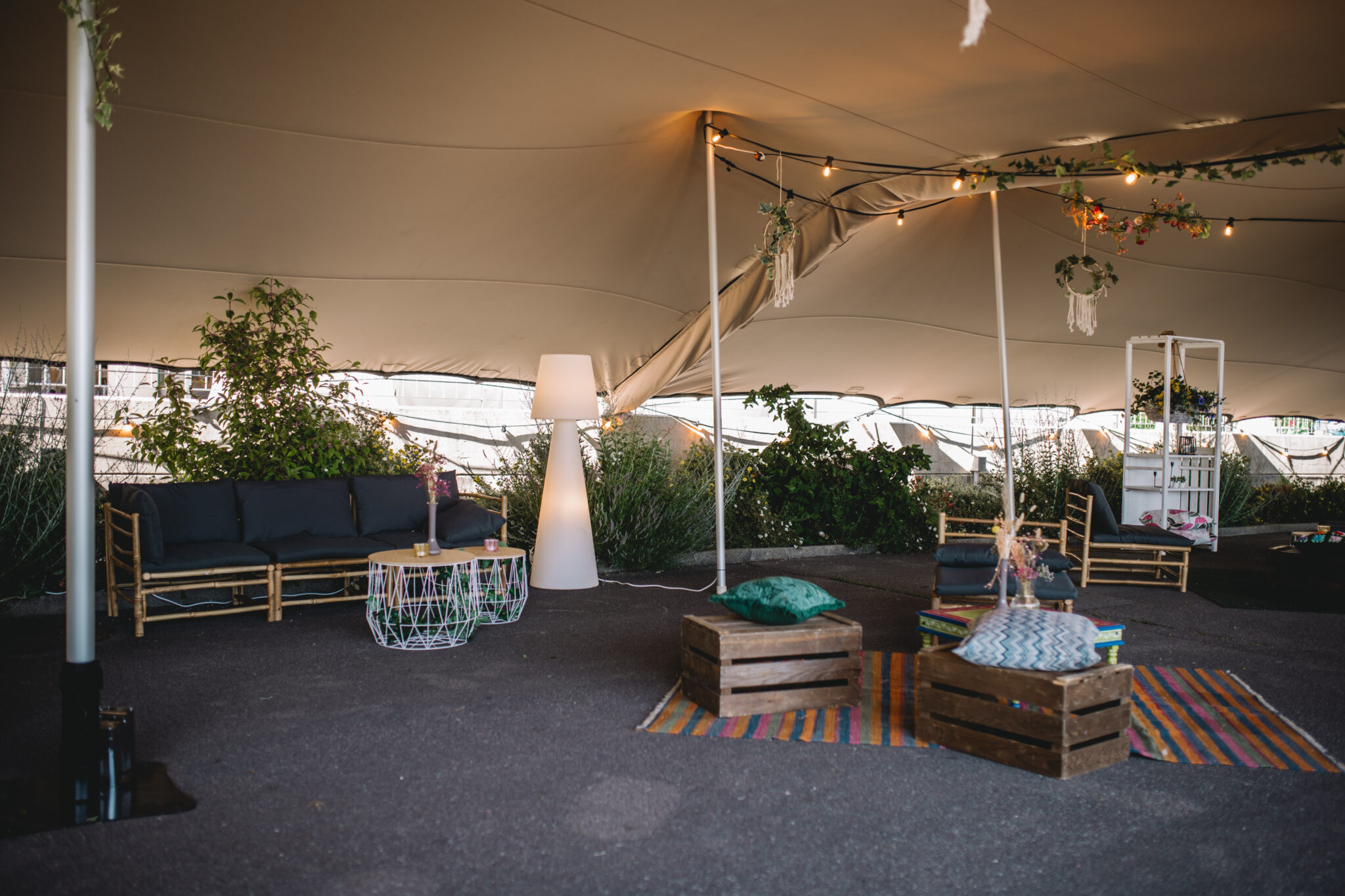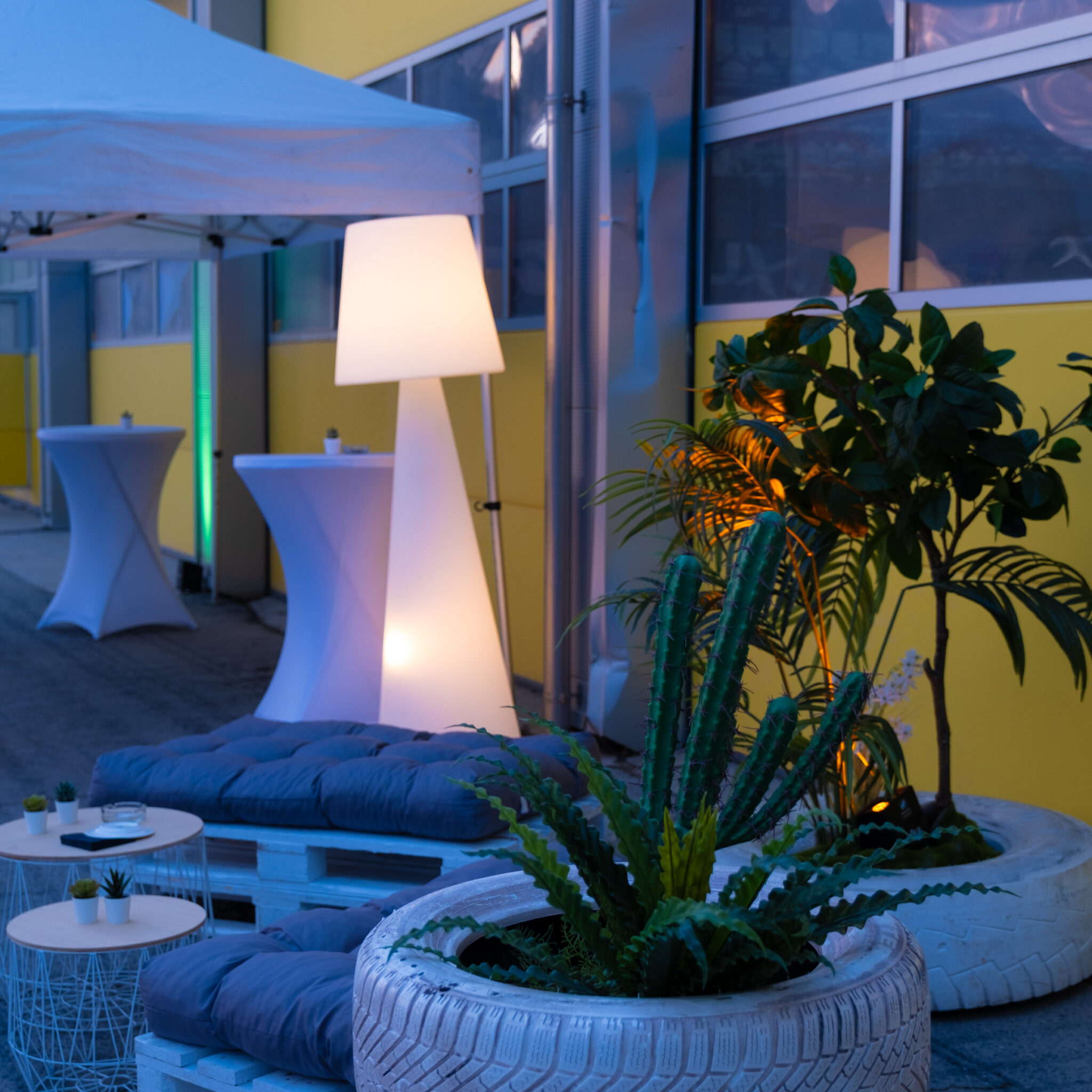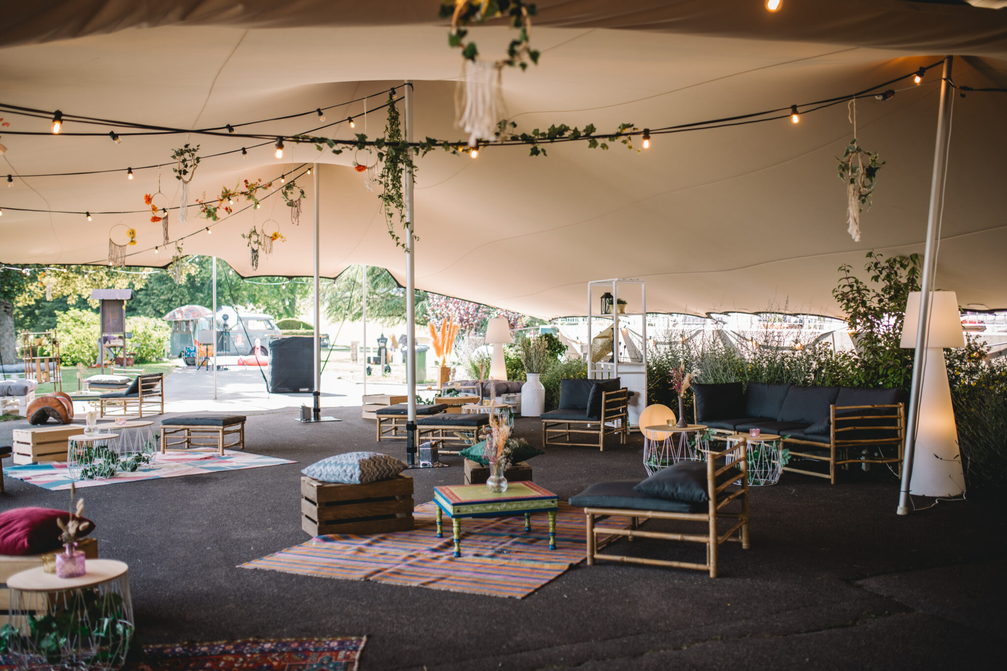 Chez Dynam nous aimons créer des cocons de calme, qui appellent les invités à s’asseoir, à s’installer confortablement et à se détendre. Pour cela nous prenons en compte non seulement le thème de la soirée, mais nous recherchons la décoration qui réunira la bonne atmosphère et le bien-être, car il est évident que la tenue des invités a toute son importance pour le choix des meubles par exemple, on ne peut ignorer les contraintes qu’imposent une robe longue accompagnée de talons élégants, et d’un verre de Champage par opposition à un look décontracté dynamique et des sodas en cannettes .