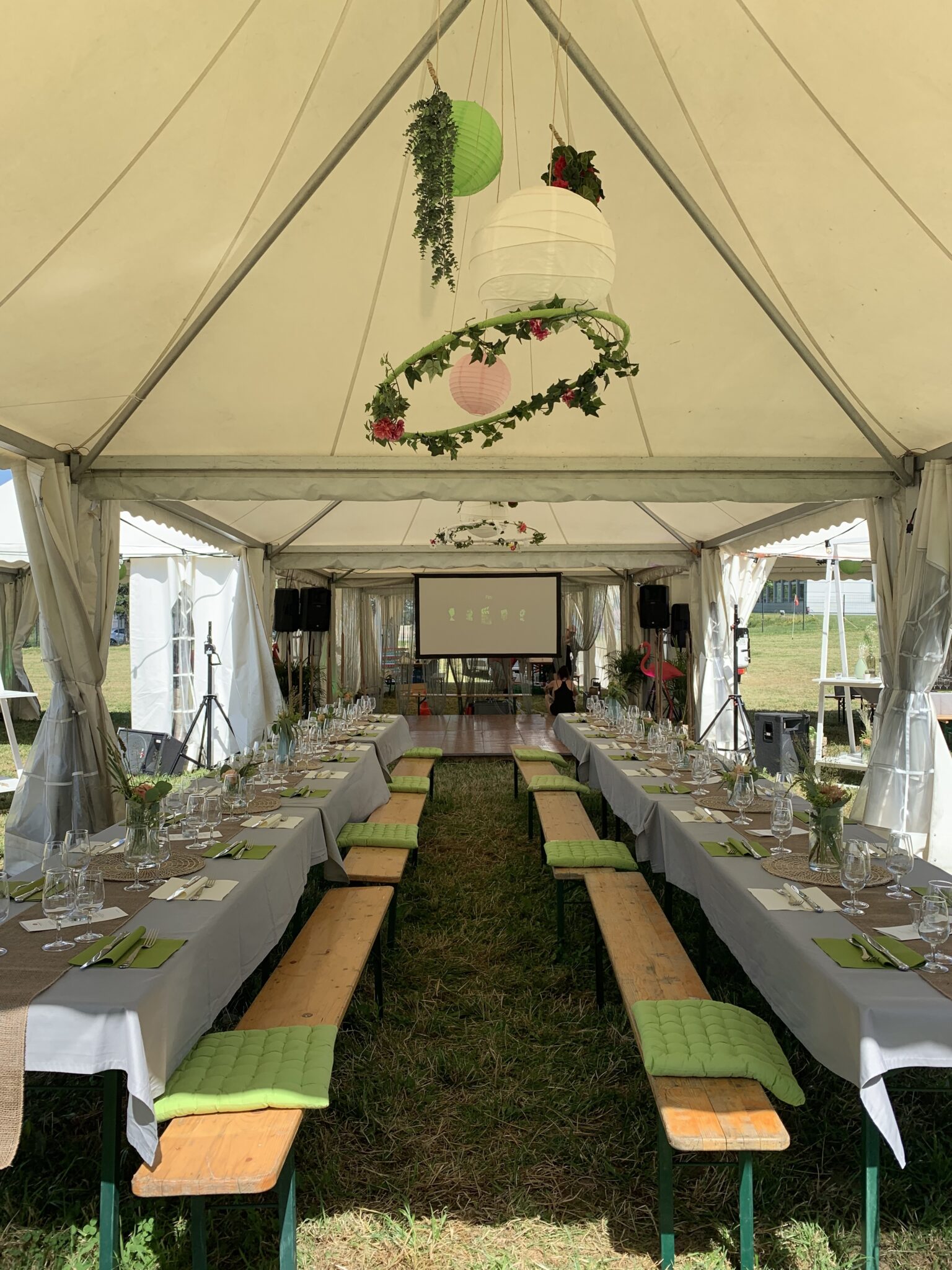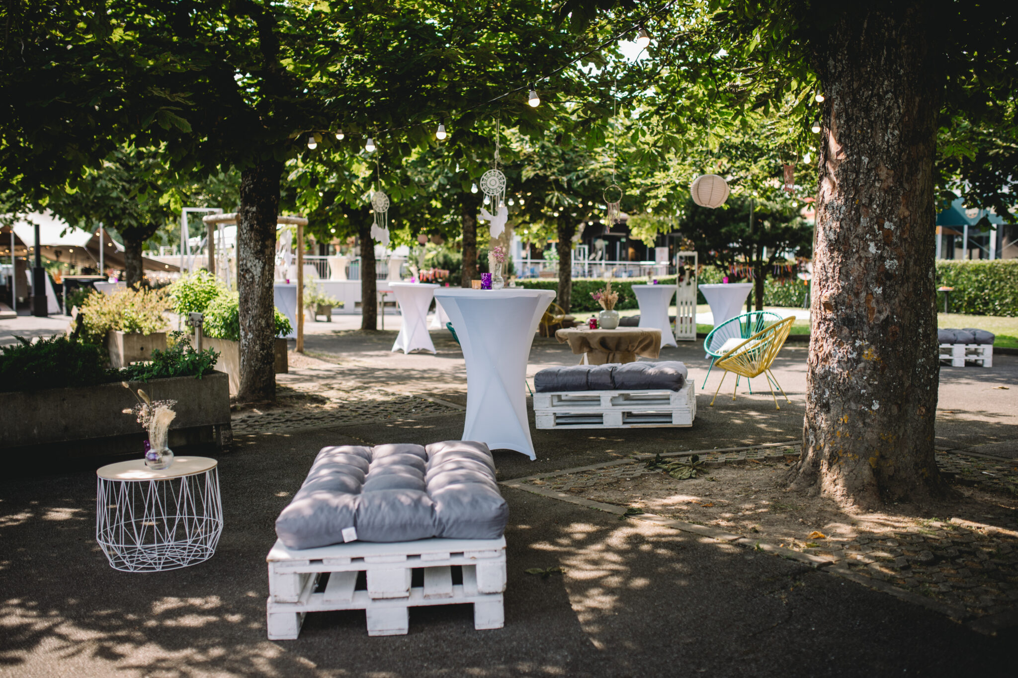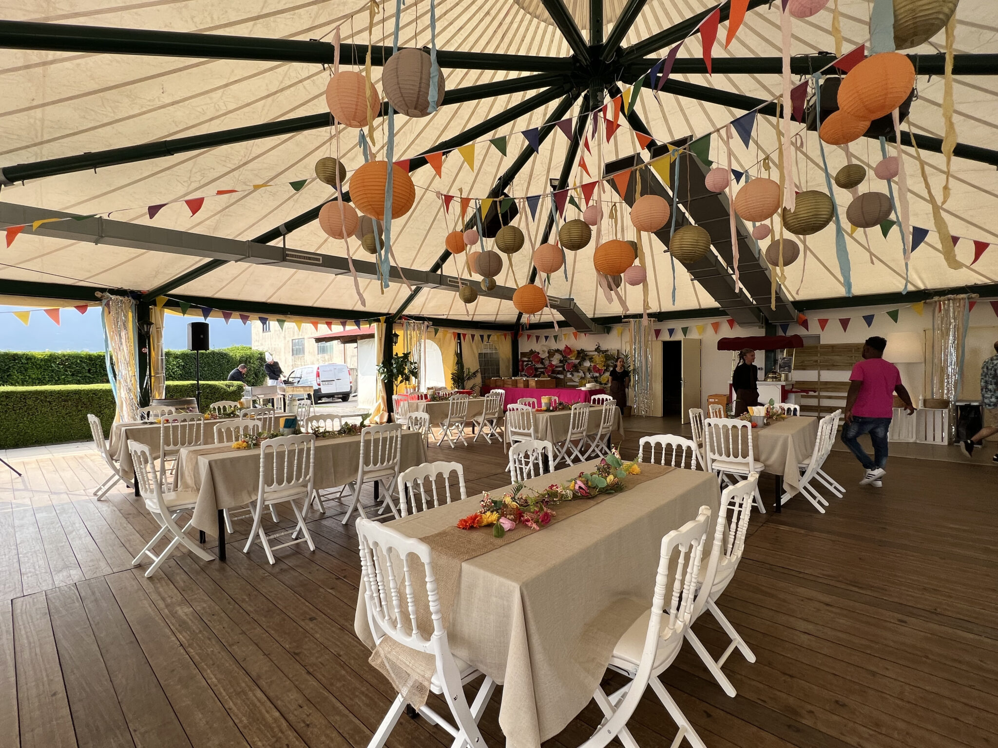 Chez Dynam nous aimons créer des cocons de calme, qui appellent les invités à s’asseoir, à s’installer confortablement et à se détendre. Pour cela nous prenons en compte non seulement le thème de la soirée, mais nous recherchons la décoration qui réunira la bonne atmosphère et le bien-être, car il est évident que la tenue des invités a toute son importance pour le choix des meubles par exemple, on ne peut ignorer les contraintes qu’imposent une robe longue accompagnée de talons élégants, et d’un verre de Champage par opposition à un look décontracté dynamique et des sodas en cannettes .