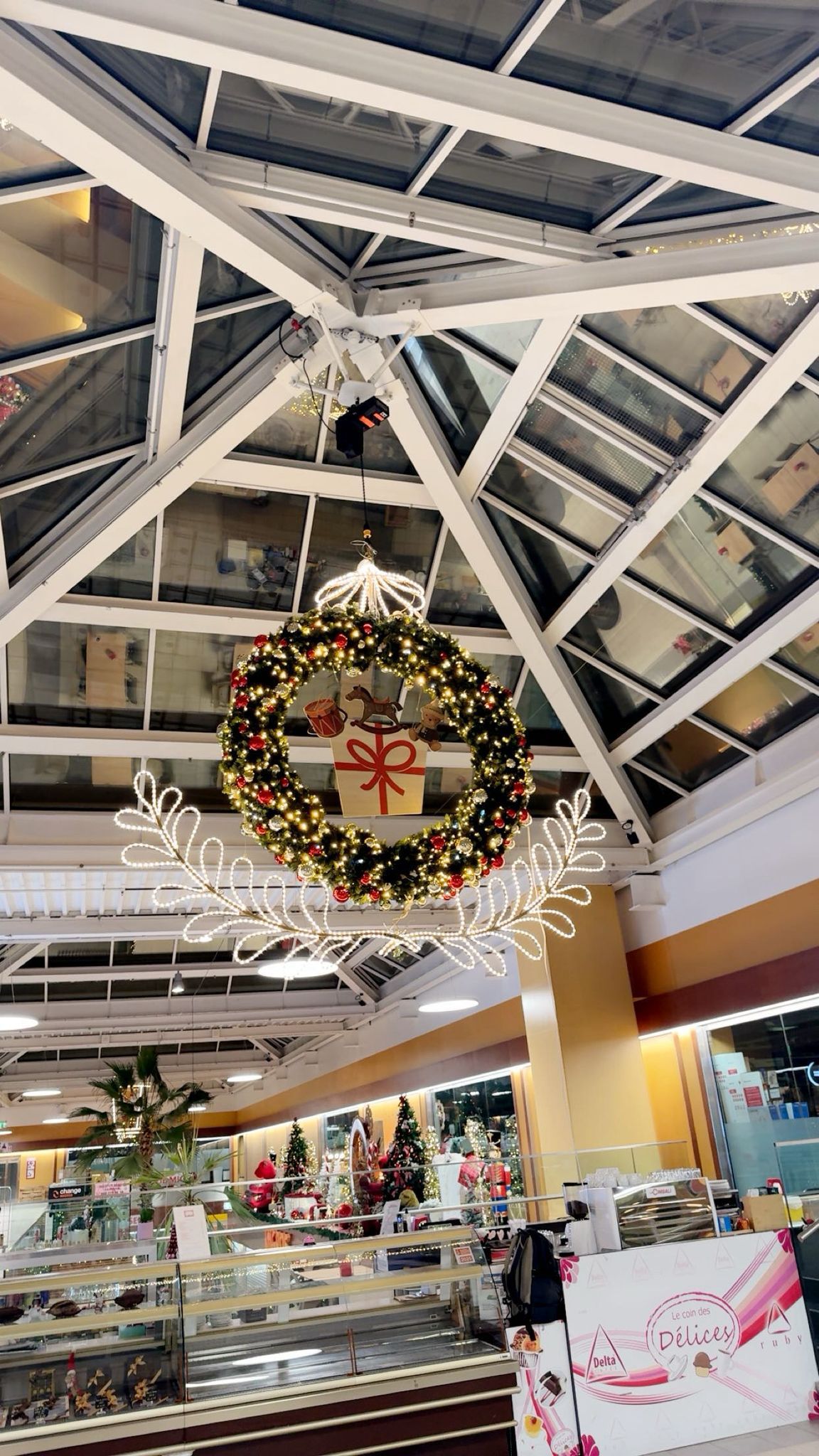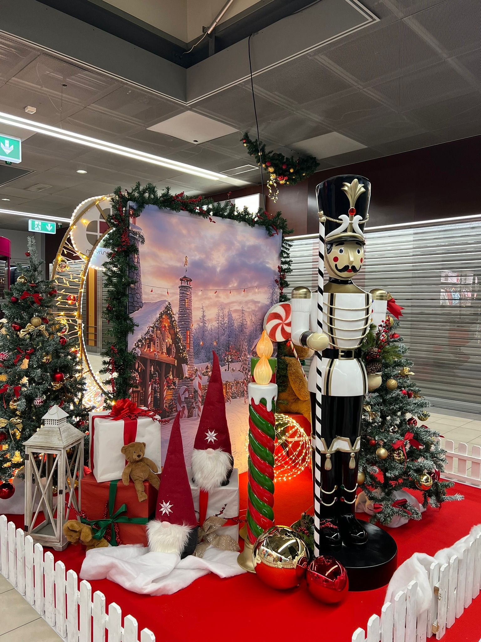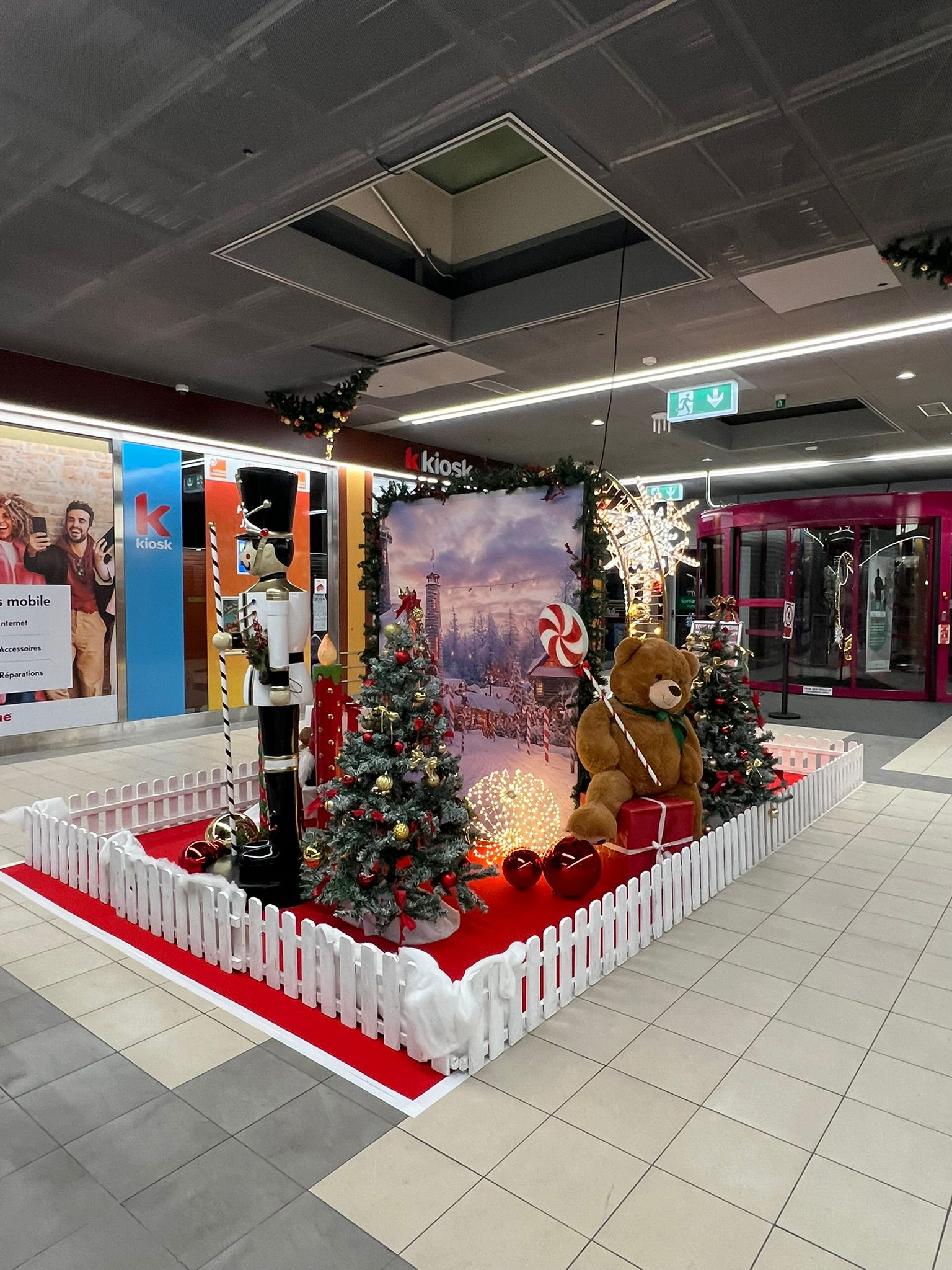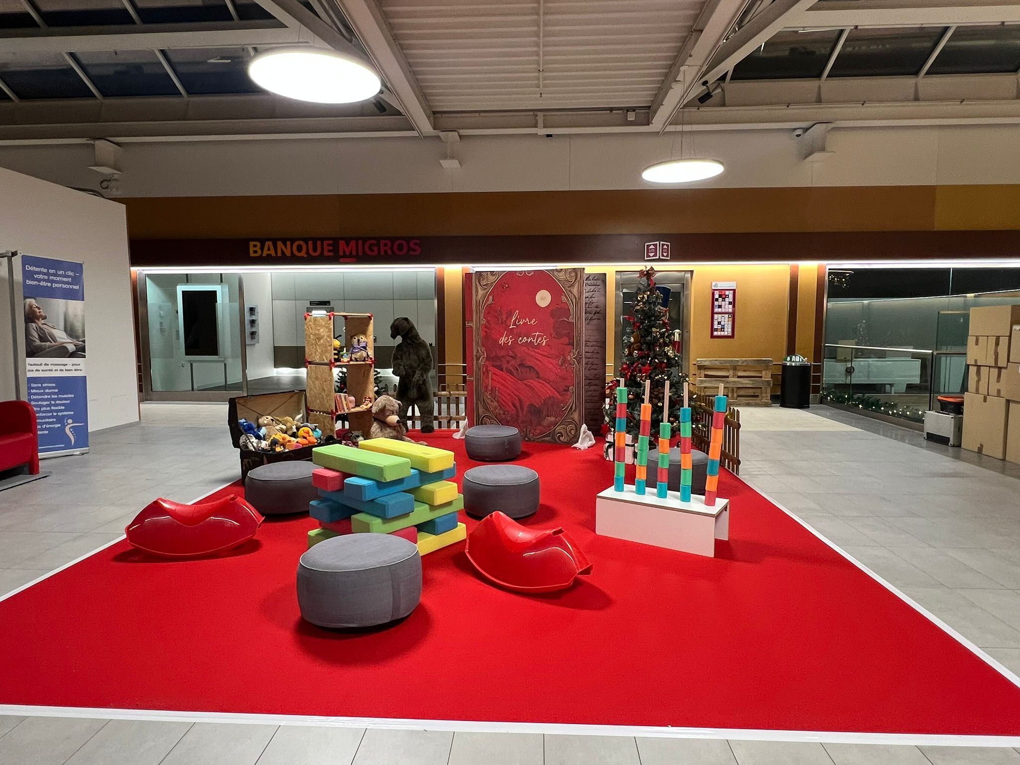 Nous avons également misé sur la décoration naturelle en sapin pour ajouter une touche saisonnière à nos animations intérieures, comme le chalet du Père Noël, et extérieures, comme l’espace d’accueil des chorales régionales.