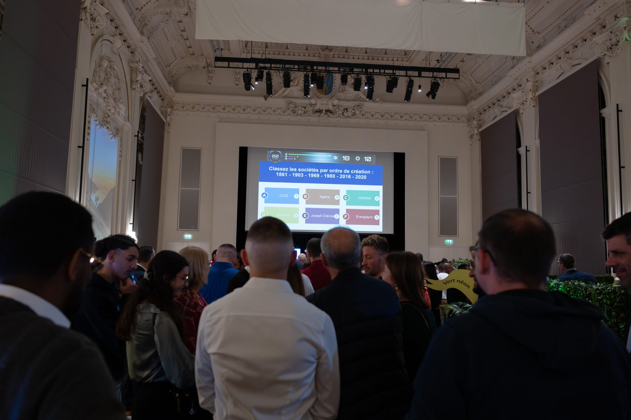 Pas moins de 20 équipes de 15 personnes ont joué avec enthousiasme, en répondant contre la montre, à des questions de toutes natures, mais surtout orientées sur les spécificités de chaque entreprise ou métiers du groupe et projetées sur écran géant, avec un facilitateur averti pour mener l’exercice.