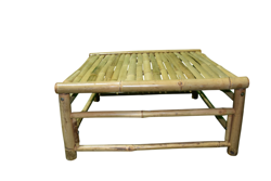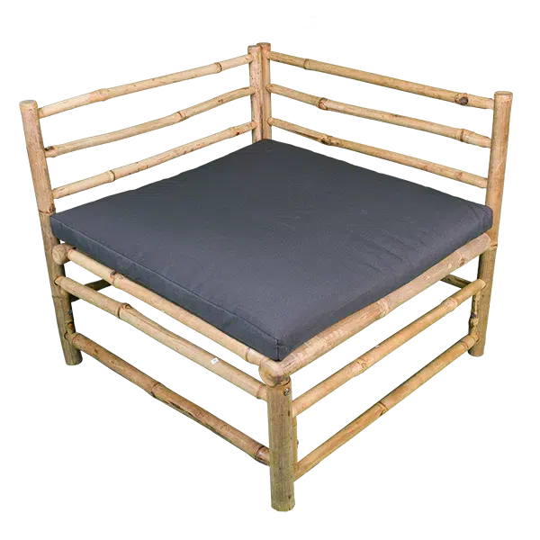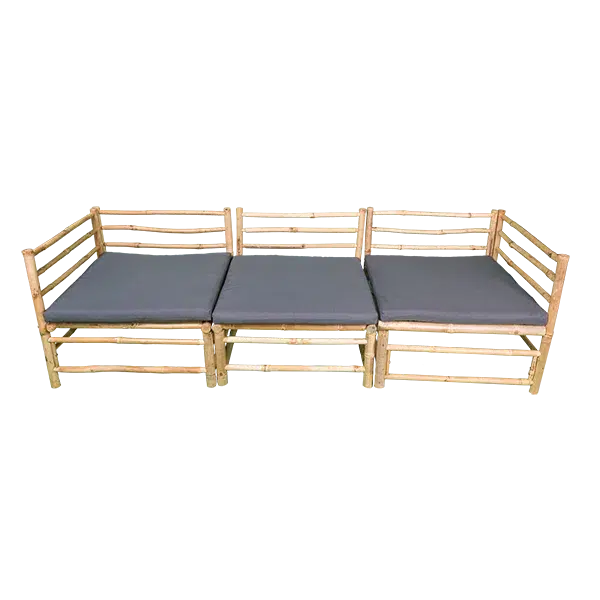 Ce petit salon se combine à l’infini. Il est tantôt un canapé pour 3 personnes, tantôt 2 fauteuils individuels et 1 pouf et s’accompagne de leur jolie table basse également en bambou.